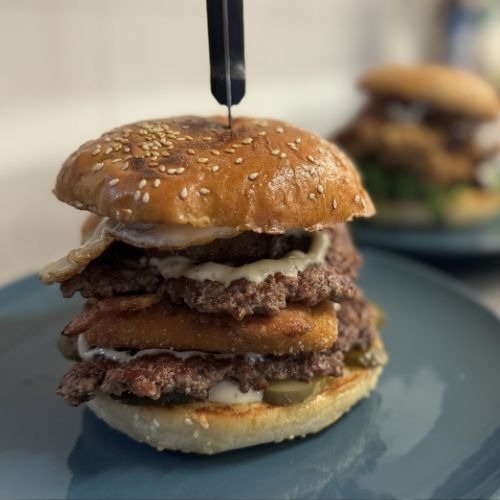 Wołowina 100g, irlandzki Cheddar, Ketchup Heinz, nasz mayo opakowanie